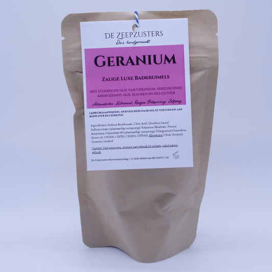 Zalige Luxe Badkruimels met 100% zuivere etherische olie van Geranium